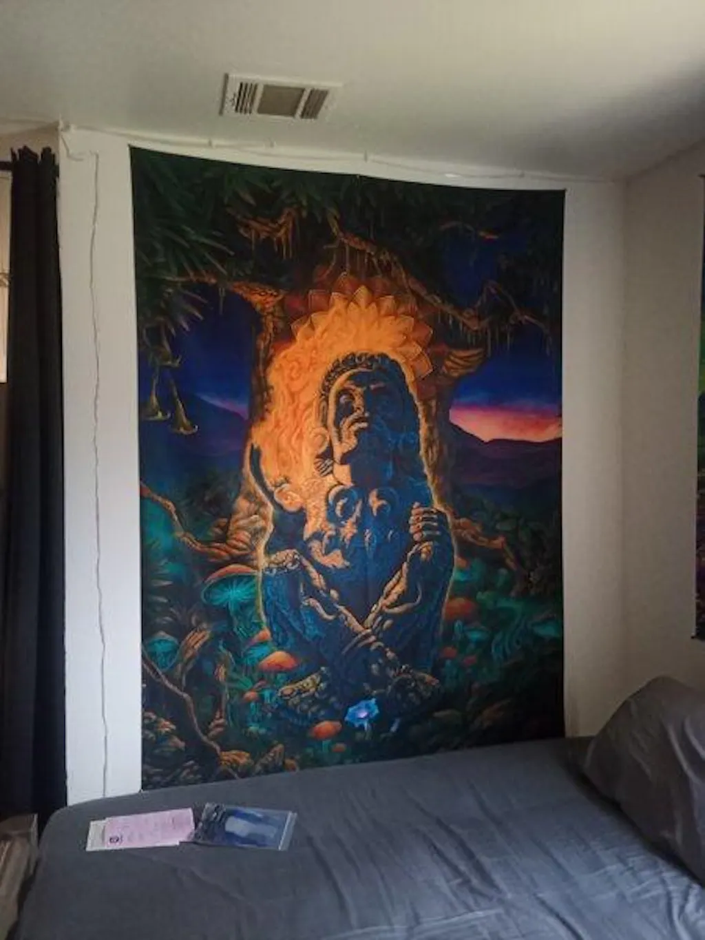 I bought the biggest size, and it fills my wall space perfectly. AbSOULutely stunning artwork, and high quality fabric, and print. 5 stars all the way!